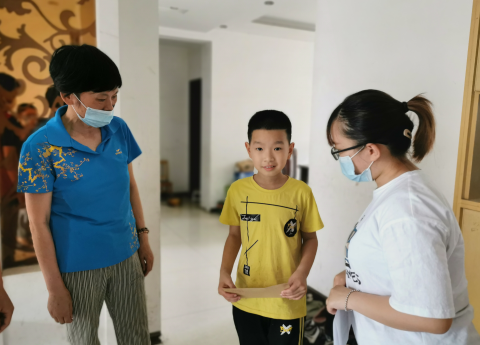 吕菊花一行首先来到贫困儿童赵文华家中,详细了解了他的学习和生活情况,小华在读小学,与智力残疾的母亲和外婆一起生活,仅靠低保金维持生活,但是成绩优异,奖状贴满整个墙面。吕菊花鼓励小华要积极面对生活困难、坚持努力学习,健康快乐成长,并送去了慰问金。随后又来到贫困儿童吴德和董俊熙家中,为他们送去了民建的温暖。